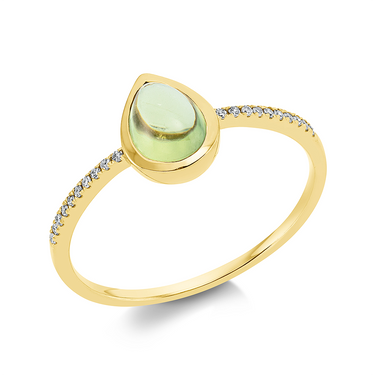 Sortija en oro amarillo con peridoto y diamantes