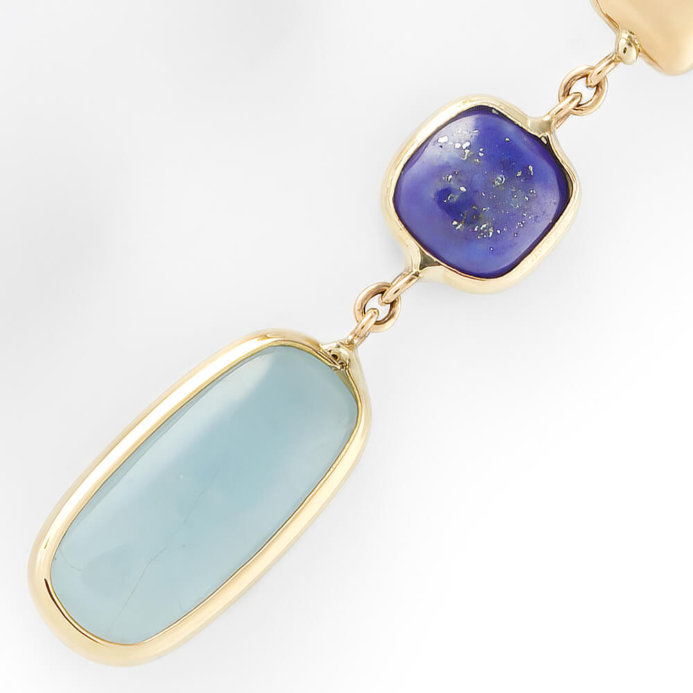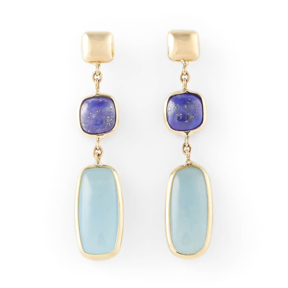Pendientes en oro amarillo con lapislázuli y aguamarina