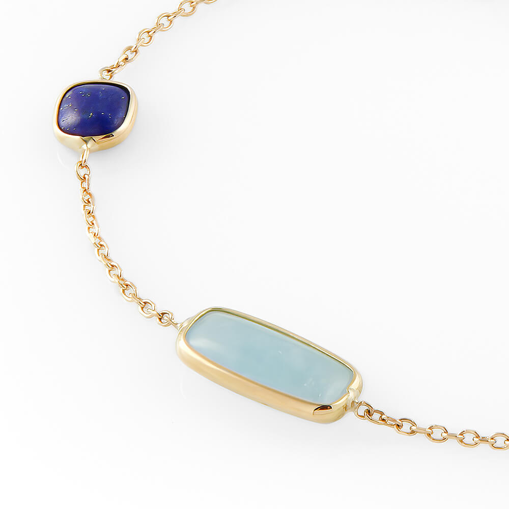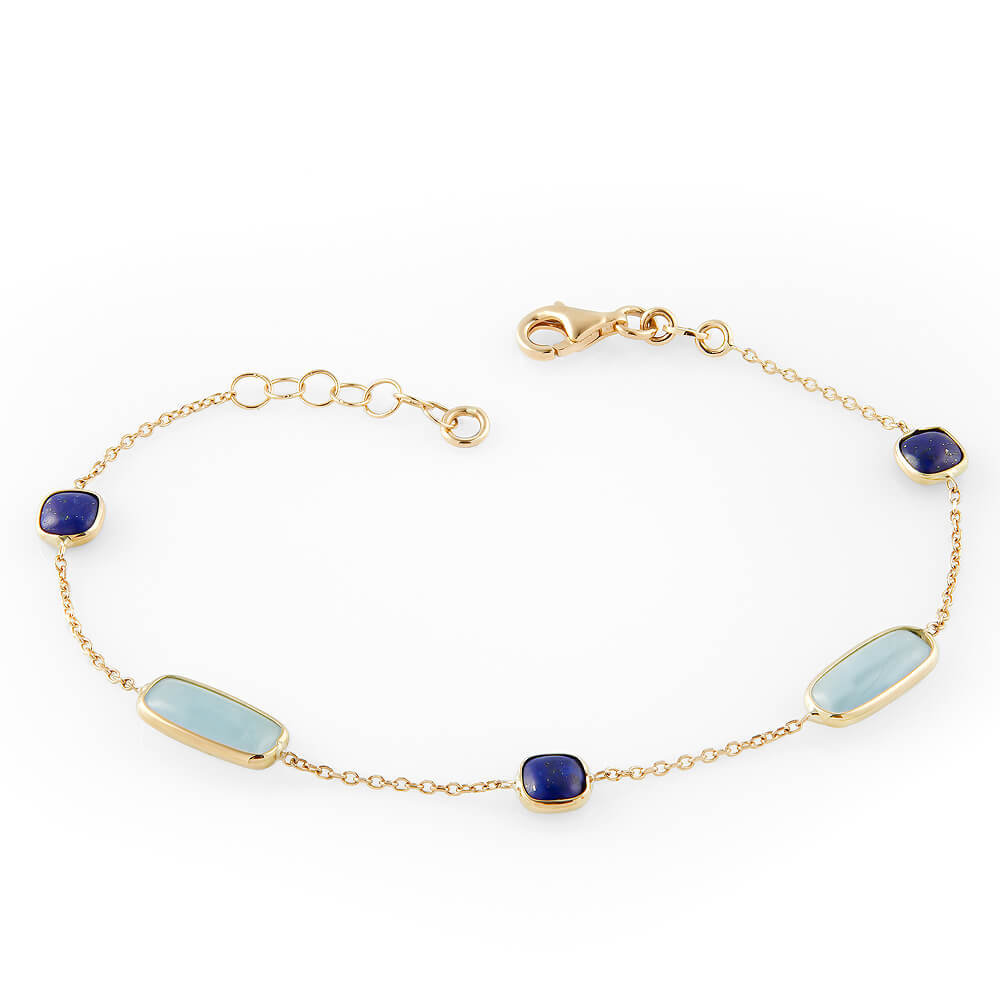 Pulsera en oro amarillo con lapislázuli y aguamarina
